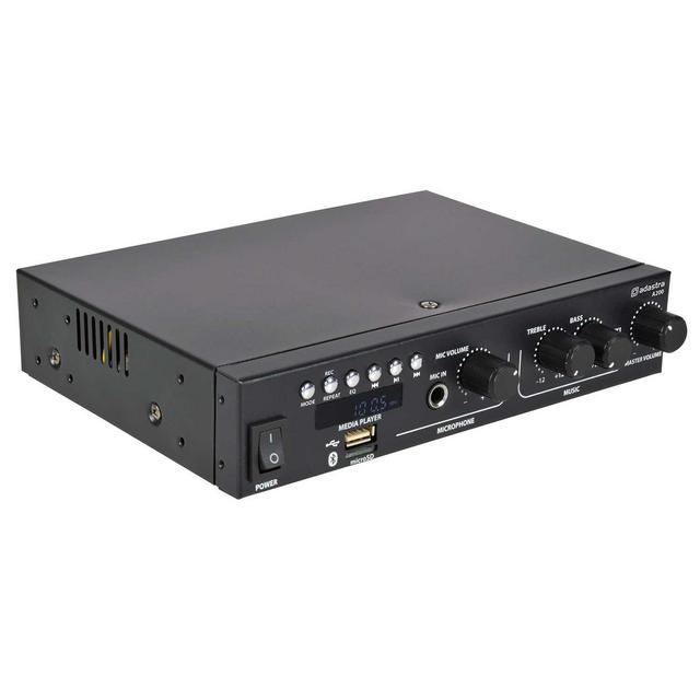 The Adastra stereo PA amplifier is ideal for background music systems in retail stores, restaurants, bars, offices and reception areas. It is also suitable for small PA systems requiring microphone announcements alongside music playback.