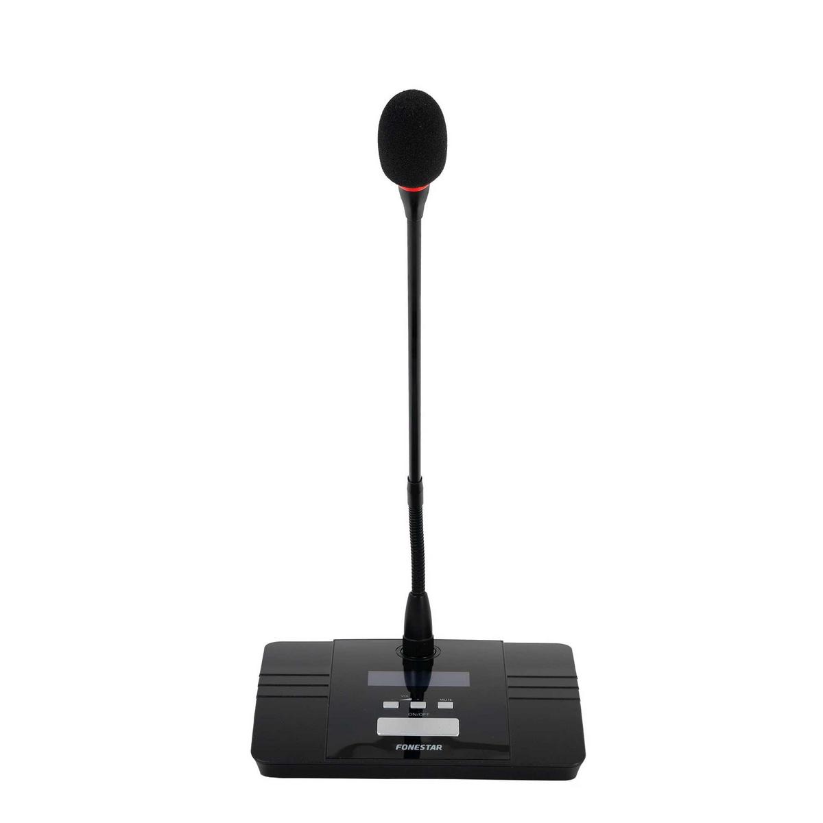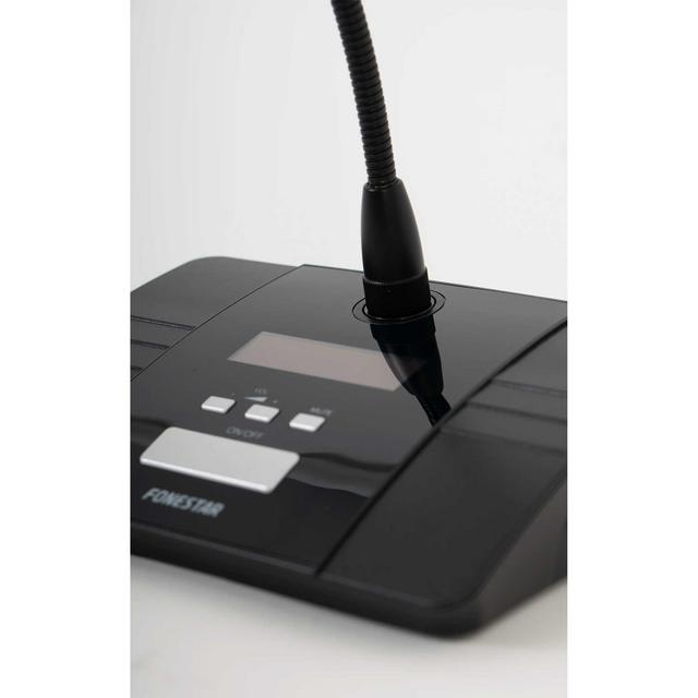 The Fonestar SCI-770D is a wireless delegate microphone designed for use with SCI-series wireless conference systems. It offers high mobility, excellent speech clarity, and flexible operation, making it ideal for conference rooms, meeting halls, council chambers, and multi-user discussion environments. With automatic channel selection and battery-powered operation, it is quick to deploy and integrates seamlessly into professional audio setups.