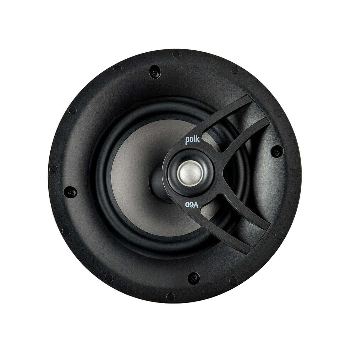 The Polk Audio V60 is a premium in-ceiling speaker from Polk's Vanishing Series, designed to deliver powerful and detailed sound while remaining visually discreet. Featuring a 6.5" Dynamic BalanceRegistered polypropylene woofer and a swivel-mounted 0.75" silk dome tweeter, the V60 provides clear midrange, crisp highs and punchy bass performance suitable for both music and home theatre applications.