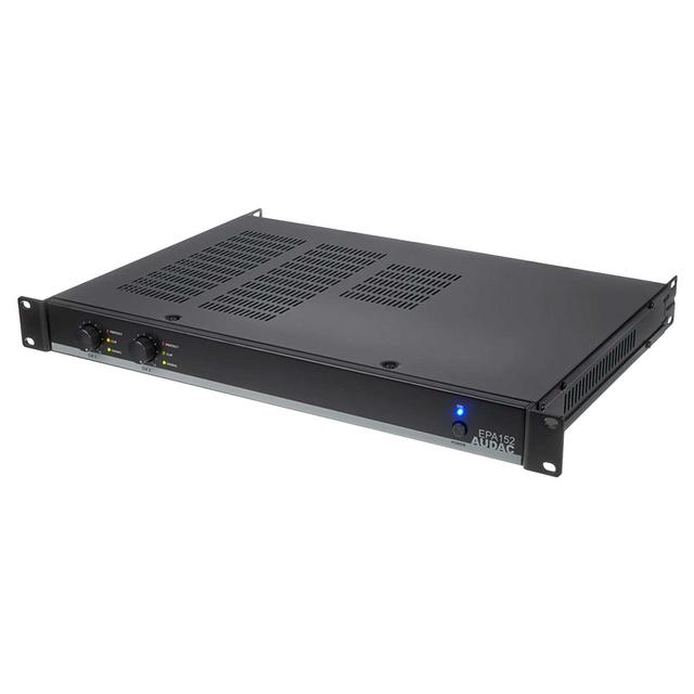 The Audac EPA152 is a compact, energy-efficient dual-channel Class-D power amplifier delivering up to 2 x 150W at 4Ω. Designed for fixed and mobile installations, this 1U rackmount amplifier combines lightweight construction, high efficiency and reliable protection circuitry for professional audio applications.