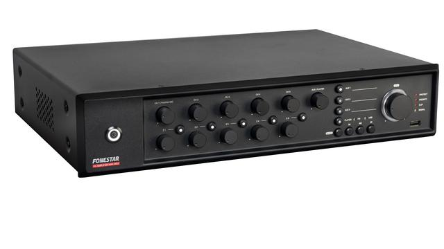 The Fonestar MAX-360Z is a powerful and highly versatile 5-zone 360W PA amplifier designed for professional public address and background music installations. Featuring a high-efficiency Class D amplifier, built-in BluetoothRegistered / USB / FM media player, and individual zone volume control, it delivers reliable performance for commercial venues that require flexible multi-zone audio control. Ideal for restaurants, bars, retail premises, schools, offices, exhibitions, monuments, and large-scale 100V line speaker systems, the MAX-360Z provides clean sound, simple operation, and priority features suitable for safety and announcement applications.
