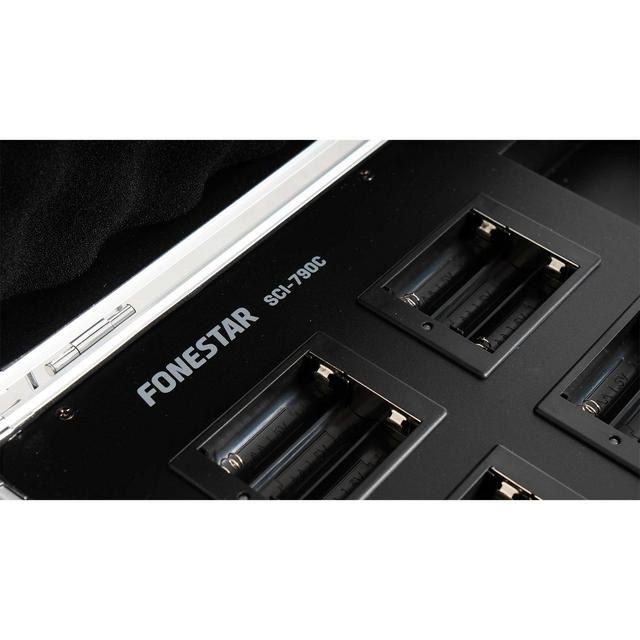 The Fonestar SCI-790C is a dedicated battery charging station designed for wireless conference microphones from Fonestar’s SCI series (e.g. SCI-760P Chairman mic and SCI-770D Delegate mic). This charging case enables simultaneous charging of up to 8 rechargeable microphone batteries — ideal for venues such as councils, schools, offices, and conference centres with frequent meetings. It ensures your wireless system is always ready for use, with batteries kept organised and maintained.