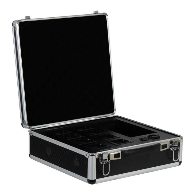 Built into a rugged carry-case style enclosure, the SCI-790C is both portable and durable, making it convenient for storage and transport between venues. The unit is powered via a standard mains supply (110–240 V AC) and delivers reliable performance when charging multiple batteries. With a neat, compact form factor and professional finish, it integrates smoothly into AV racks or equipment storage areas.
