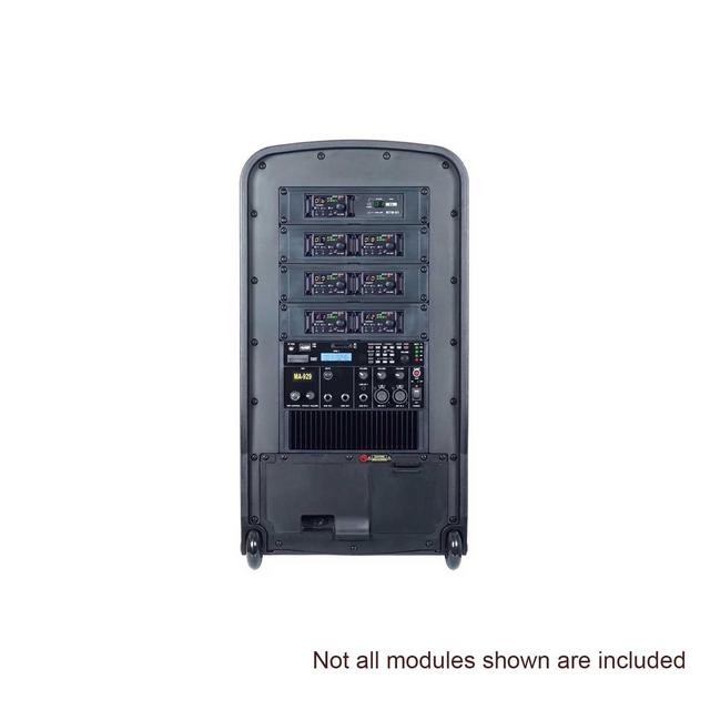 Built to handle regular professional use, the MA-929 PLUS features a rugged portable cabinet design with an integrated foldable handle and trolley wheels for easy transport. Its MTM speaker configuration delivers wide sound dispersion with strong low-frequency performance, while the built-in DSP audio processor provides quick access to tailored sound profiles for speech or music applications. The system’s modular architecture supports easy expansion via optional receiver, transmitter, and player modules, with dedicated controls to manage wired microphones and external sources with clarity and efficiency. For enhanced durability during outdoor or mobile use, a waterproof cover is included to help protect the unit during transport and storage.