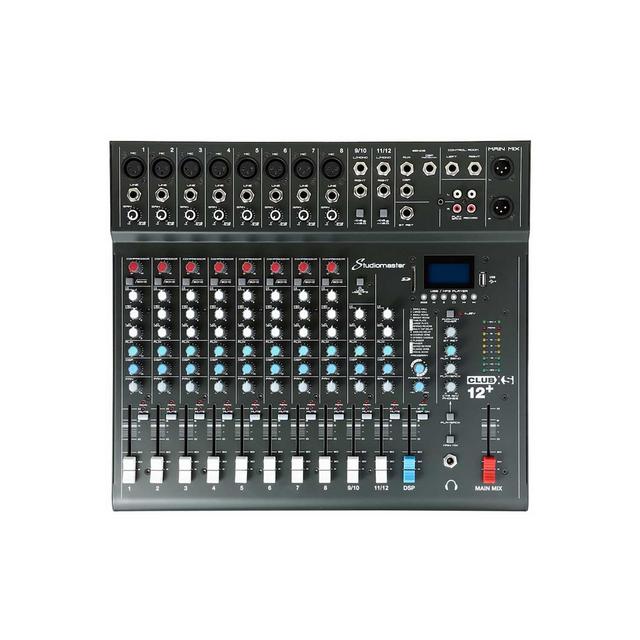 The Studiomaster CLUB XS12+ continues the legacy of the renowned CLUB series, delivering professional features in a compact and affordable analogue mixer. Designed for live performance, rehearsal spaces, houses of worship and home recording, it combines flexible inputs, onboard DSP effects and Bluetooth connectivity in a sleek modern finish.