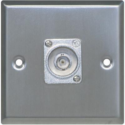 A metal AV wall plate featuring a BNC Socket. Standard Wall Plate size.